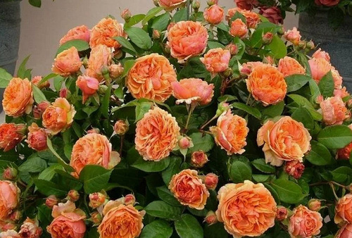 Цветки насыщенно-оранжевые, очень душистые, густомахровые в старинном стиле. Очень обильное повторное цветение. Цветки очень хорошо стоят в срезке. Лист блестящий, темно-зеленый. Подходит для посадки в массивах на клумбах на заднем плане. Куст высотой 80-120 см. Местоположение: солнце. Почва: требовательна к почве, хорошо растет на богатой гумусом, суглинистой, воздухопроницаемой, влагоемкой, слабокислой почве. Устойчивость к условиям среды и болезням: зимостойкий. Использование: идеально подходит для ограждения открытых водоемов, зон отдыха, а также для создания изолированных групп и цветных пятен в массивах.