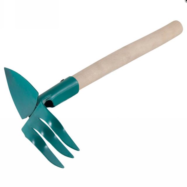 Мотыжка комбинированная, 2 зубца с лопаткой, деревянная ручка (20шт/уп) Рустрейд