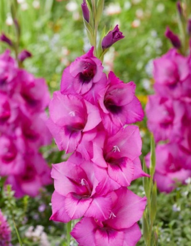 Гладиолус Пёпл Даймонд - цветки насыщенного пурпурно-фиолетового оттенка, с едва заметным радужным отливом, которые засверкают в вашем саду как драгоценные камни. Высота растения 90-120 cм. Диаметр цветка: 8–10 см. Тип лепестков: одиночные, с гладкими краями. Зацветает с августа по сентябрь. Аромат: лёгкий, едва уловимый. Насыщенный цвет бутонов поражает воображение и создает мистическую атмосферу. Добавьте немного королевского шика в свой сад с помощью элегантных гладиолусов сорта Пёпл Даймонд!