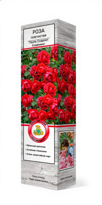 Куст прямостоячий, с крупными шипами, высотой 2-3 м. Листва темно-зеленая, матовая. Цветки 7-8 см, ярко-малиновые в самом начале, затем приобретают слегка пурпурный налет и выгорают до вишневых. Появляются в кистях по 3-15 шт, на длинных побегах, не боятся ни жары, ни дождя. Цветет один раз, очень обильно. Местоположение: солнце. Почва: требовательна к почве, хорошо растет на богатой гумусом, суглинистой, воздухопроницаемой, влагоемкой, слабокислой почве. Устойчивость к условиям среды и болезням: средняя устойчивость к болезням и дождю. Использование: вертикальное озеленение.