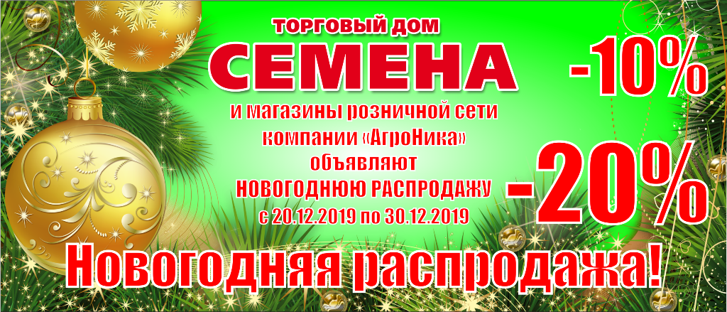 Торговый дом СЕМЕНА и розничная сеть компании "АгроНика" объявляет распродажу товаров для садоводов и огородников с 20 декабря 2019 по 30 декабря 2019 года.